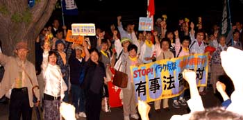 有事法案の採決強行に抗議するデモ隊を激励