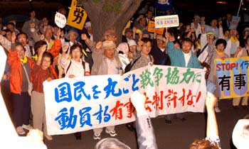 有事法制に反対する5・14緊急集会が、日比谷野外音楽堂で開かれ、国会までデモ行進が行われました。