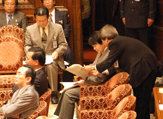 これにたいし、私は「国民の税金を使って仕事をする会社からの献金規制については、昨年、鈴木ムネオ事件とも関連して私も提起し、総理は検討するといっていた。しかし、1年半たっても何も出てこないではないか、しかも、生保に国民の税金を投入する仕組みをつくり、負担を押しつける、こういうやり方はすぐにやめるべきだ」と批判しました。