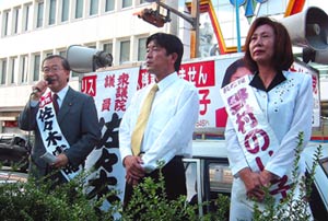 地元小選挙区候補の野村のり子さん、岡崎市議会議員の柳田孝二さん、鈴木まさ子さんと、いっしょに行動しました。