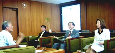 はじめに、岡崎信用金庫の常務理事と関連会社おかしん総研の部長さんを訪ね、最近の景気動向や金融情勢について説明を受け懇談しました。