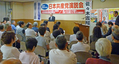 江南市の演説会では、100人の参加で、日本共産党を勝たせたいという意志が広がりました。