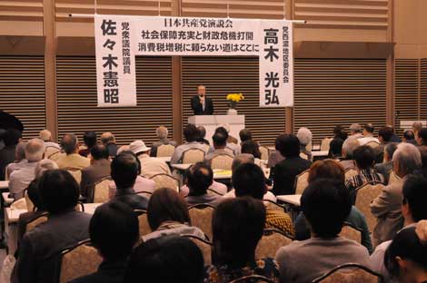 岐阜県大垣市で、消費税増税をめぐって日本共産党主催の対話・演説会が開かれました。