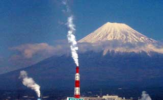 <新幹線で見た富士山は雪に覆われ鮮やか>