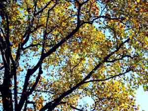 <朝の宿舎発国会行きバスの窓からみた内堀通りの並木も紅葉してきました>