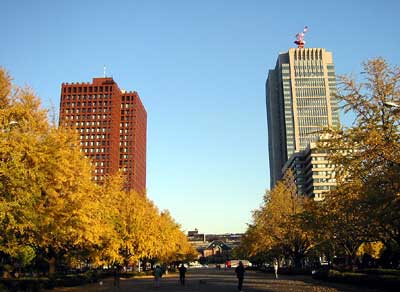 <東京駅の丸の内側にある並木も紅葉してきました。正面が東京駅。PM15:40>