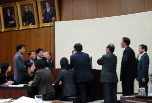 2日目も、大臣に相当する筆頭提案者の無断欠席によって空転。