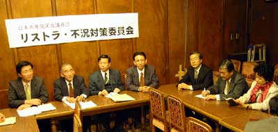第2回目の「リストラ・不況対策委員会」が開かれ、各地のリストラ反対闘争や国会議員団の調査活動が紹介されるとともに、今後の国会での論戦についても議論しました。