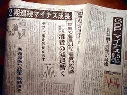 <二期連続マイナス成長を報道する新聞(夕刊)>