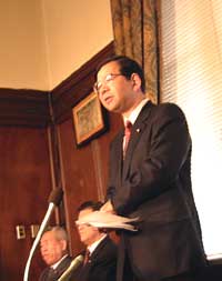 これにたいして、野党第一党の民主党は、ずるずるとこの路線にはまり込んで、「いったいどこが野党なのか」と言われるほどの閣外協力ぶり。報復戦争参戦法には、ぎりぎりで反対したものの、その法律の実行(事後承認)に賛成、PKO法の改悪にも賛成……。責任は、きわめて重大です。