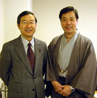 <和服姿の穀田国対委員長とパチリ>