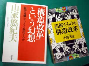 一冊は、山家悠紀夫『「構造改革」という幻想──経済危機からどう脱出するか』(岩波書店)、もう一冊は、小野善康『誤解だらけの構造改革』(日本経済新聞社)です。