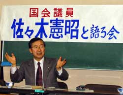 島田市でおこなわれた懇談会「佐々木憲昭と語る会」では、松本さとし議員、桜井洋子議員とともに話をさせていただきました。───「サラ金問題を国会で取りあげてほしい」「中部銀行にたいする金融庁の早期是正措置はどういうことなのか」「狂牛病についての対策」などが話題になりました。