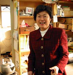 <明るく元気のいい松浦みさ子市議(地区事務所で)>