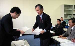 <申入書を農水省に手渡す交渉団の代表>