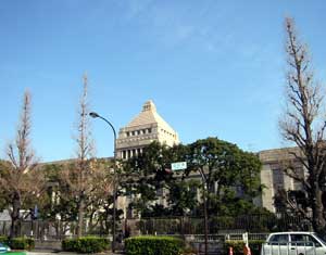 <今日の国会風景──青い空、寒〜い風>