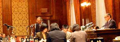 今日は予算委員会が開かれ、財務大臣から第二次補正の提案理由説明が行われました。 <下を向いて説明しているのは塩川財務大臣(向かって左)>