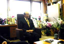 ───議員会館の部屋には委員長就任祝いの花が、所狭しと並べられていました。その最初の仕事が「強行採決」とは……。なさけない!