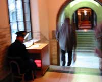 <議事堂内に入るときは、休日でも守衛さんが見張っています>