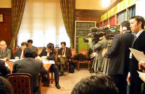 <質問後の記者会見にはたくさんのマスコミがきました>