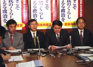本日午後、筆坂書記局長代行、穀田国対委員長、木島日出夫議員とともに「鈴木議員・外務省腐敗問題」について、新資料を公表しながら記者会見しました。