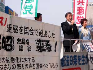 午後1時半から、八田ひろ子参議院議員とともに名古屋市内で、自民党にたいして証人喚問に応ずるよう訴えました。