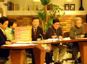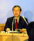 11時過ぎに、外務省の調査結果について党の見解を発表する筆坂さん。たくさんのマスコミが詰めかけました。