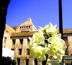 <国会の裏庭に咲いている可憐な水仙の花>