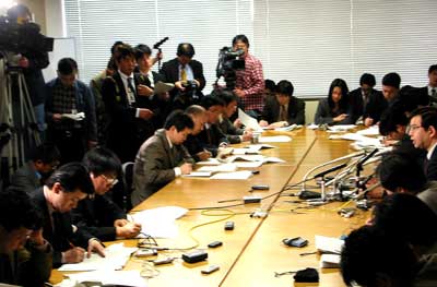 <記者会見にはマスコミ関係者約80人が参加しました>