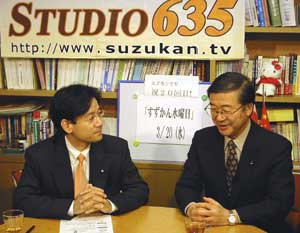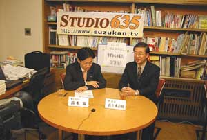 ───民主党の参議院議員の鈴木寛さんの議員会館の部屋がスタジオになっており、驚きました。約30分にわたり、鈴木宗男事件や議員辞職勧告決議について議論しました。