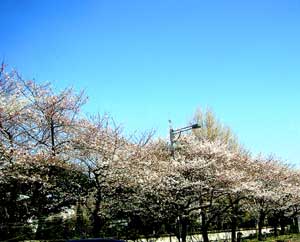 . <国会行きのバスの窓から見た桜は五分咲きでした>