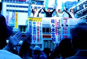 <横浜駅前での街頭演説>