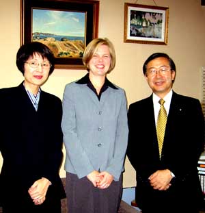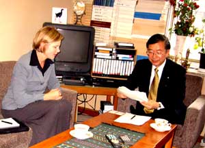 背の高い人でした。いっしょにみえたのは大使館の政治部リサーチオフィサーの中里さん。
