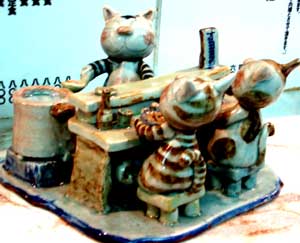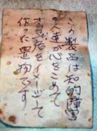 「この製品は、知的障害の人たちが心をこめてオヨヨン店をイメージして作った置物です」