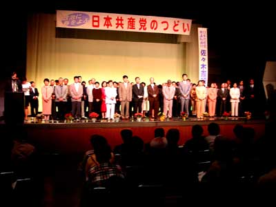 はじめに「こんちぇると演奏」などの文化行事のあと、3人の新入党員の紹介とインタビューがありました。そして。来年のいっせい地方選挙の候補者の紹介と決意表明がありました。