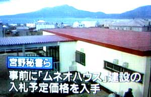 北方領土・国後(くなしり)島の「ムネオハウス」建設の入札に絡み、鈴木宗男衆院議員の後援企業に有利な内容で受注させるため、発注元の支援委員会の業務を妨害したとして、東京地検特捜部が、鈴木氏の公設第1秘書、宮野明容疑者(53)と建設会社幹部ら計7人を偽計業務妨害の疑いで逮捕しましたというものです。特捜部は今日、北海道釧路市の鈴木事務所などを家宅捜索しました。