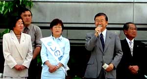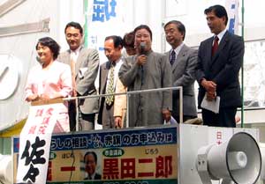 車の上には7人の議員・候補が乗りました(超人口過密!)。