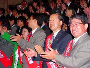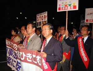 政党では、日本共産党の志位和夫委員長、社民党の土井たか子党首、民主党の生方幸夫衆議院議員、さらに無所属から中村敦夫参議院議員の挨拶がありました。
