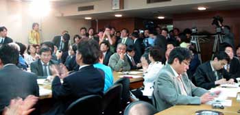 4党共催で議員会館の会議室で開かれましたが、会場に入りきれないほどの参加者があり、熱気あふれる発言が続きました。