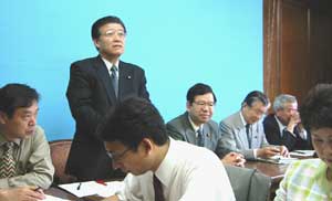 早朝におこなわれた与野党の書記局長・幹事長会談の直後、開かれた議員団総会。会談の結果と日本共産党の方針について報告がありました。