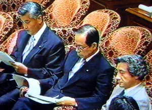 今日は午前中、有事法制問題の特別委員会がひらかれました。<写真はNHKテレビ画面から>