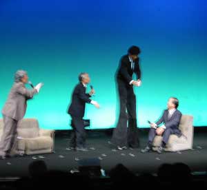 ザ・ニュースペーパーは、じつにすばらしい風刺のきいたお芝居をすることで有名です。今日も、ワールドカップや国会の動き、高貴な方々などを題材に、小気味よいお芝居を演じてくださいました。