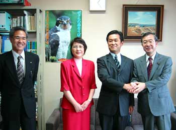 <私の事務所で打ち合わせ。向かって右から私、県議補欠選挙予定候補の井深さん、衆院岐阜一区予定候補の木下さん、市議の堀田さん>