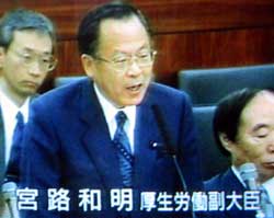 今日、帝京大医学部受験への「口利き」問題で、宮路和明・厚生労働副大臣は、午前の参院厚労委員会の理事懇談会に出席して次のように釈明しました。<テレビ画面より>