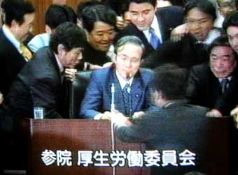 今日、午後2時44分、参議院の厚生労働委員会で、与党が採決を強行しました。