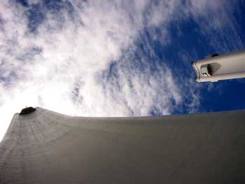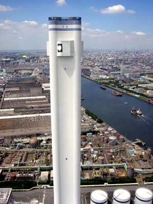 高さが180メートルもあるのです。4本の煙突を束にして、二つの煙突があります。エレベーターがついているのは、ひとつだけ。