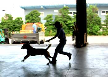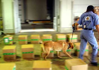 <麻薬などの社会悪を摘発するために活躍している犬>