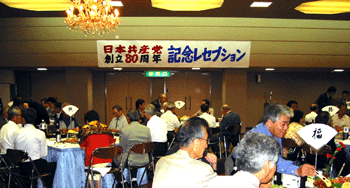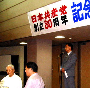 岐阜県委員会主催で、日本共産党80周年記念レセプションがおこなわれ、各界の代表が参加しました。 <挨拶する松岡党県委員長>