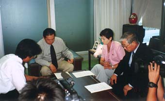 日本共産党の長野県議団長・石坂千穂さんのHPには、「脱ダムを進め、下諏訪ダムを中止すると主張した高橋文利さんが勝利したといううれしいニュース! やった!」と、喜びを書き込んでいます。<日本共産党県議団と田中知事(昨年8月)>