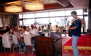 永年党員になった「きやま」さんは、自らの人生をふりかえってお話をされたあと、30年間あたためてきた新曲を披露し、拍手喝采をあびました。